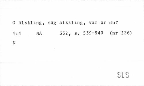 //// O älskling, säg älskling, var är du? //// 4:4 NA 352, s. 539-540 (nr 226) //// N //// SLS ////