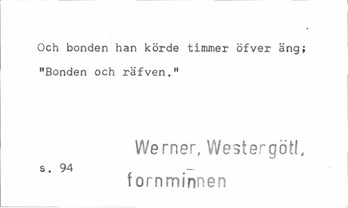 //// Och bonden han körde timmer öfver äng; "Bonden och räfven." //// Werner, Westergötl, //// s. 94 //// fornminnen ////