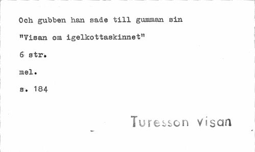 //// Och gubben han sade till gumman sin "Visan om igelkottaskinnet" 6 str. mel. s. 184 //// Turesson visan ////