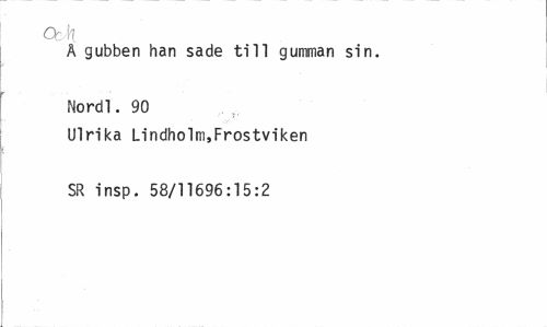 //// CfcJt //// Å gubben han sade till gumman sin. Nordl. 90 //// Ulrika Lindholm,Frostviken SR insp. 58/11696:15:2 ////
