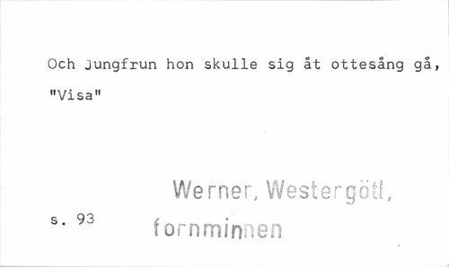 //// Och Jungfrun hon skulle sig åt ottesång gå, "Visa" //// Werner, Westergotl, //// s 93 f //// fornminnen ////