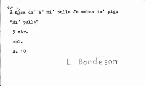 //// 6c> //// Å Kfösa dä' ä' mi' pulla Ja maken te' piga "Mi' pulla» 5 str. mel. H. 10 //// L. Bondeson ////
