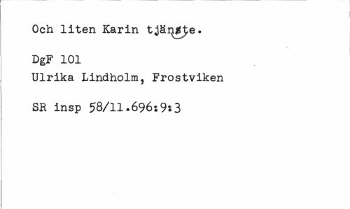 //// Och liten Karin tjär^e. DgF 101 //// Ulrika Lindholm, Frostviken SR insp 58/11.696:9*.3 ////