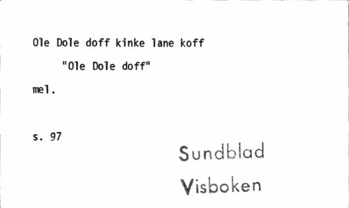 //// Ole Dole doff kinke lane koff "Ole Dole doff" //// mel. s. 97 //// Sundblad //// Visboken ////