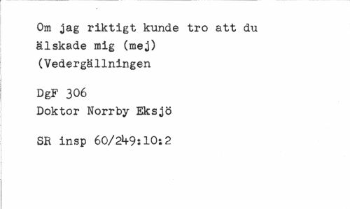 //// Om jag riktigt kunde tro att du älskade mig (mej) (Vedergällningen //// DgF 306 //// Doktor Norrby Eksjö SR insp 60/2^9J10:2 ////
