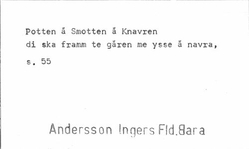 //// Potten å Smotten å Knavren //// di ska framm te gåren me ysse ä navra, //// s. 55 //// Andersson inqers Fld.9ara ////
