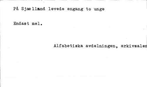 //// På Sjae Iland levede engang to unge Endast mel. //// Alfabetiska avdelningen, arkivsalei ////