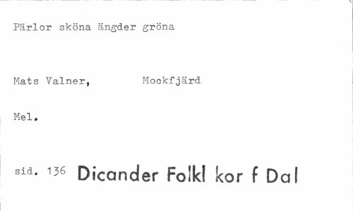 //// Pärlor sköna ängder gröna //// Mats Valner, Mockfjärd //// Mel. //// sid. 136 Dicander Folk! kor f Dal ////
