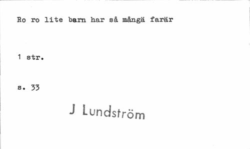 //// Ro ro lite barn har så många farär //// 1 str. s. 33 //// J Lundsfröm ////
