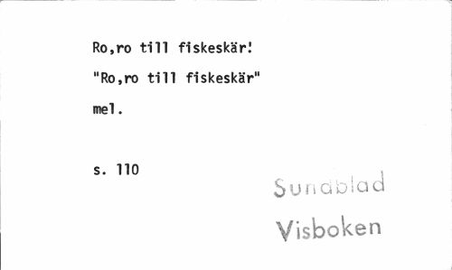 //// Ro.ro till fiskeskär! "Ro.ro till fiskeskär" mel. //// s. 110 //// S u n q b I a a //// Visboken ////