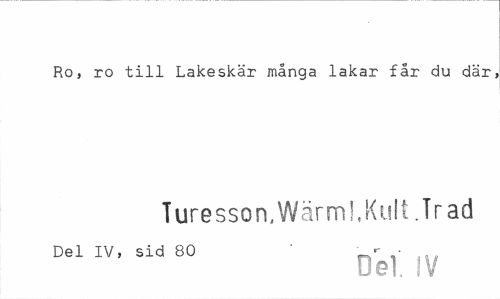//// Ro, ro till Lakeskär många lakar får du där: //// Turesson,Wärml,Kult.Trad //// Del IV, sid 80 " - <r - //// Del, IV ////