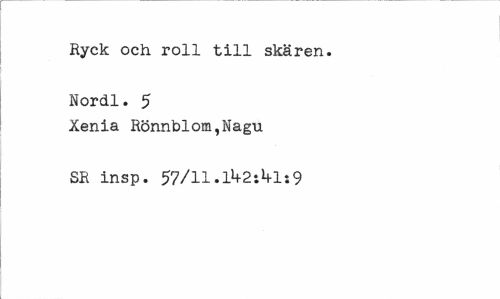 //// Ryck och roll till skären. Nordl. 5 //// Xenia Rönnblom,Nagu SR insp. 57/11.1^2:^1:9 ////