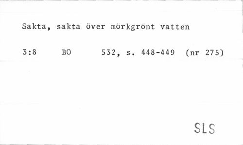 //// Sakta, sakta över mörkgrönt vatten //// 3:8 BO 532, s. 448-449 (nr 275) //// SLS ////