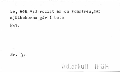//// Se, ack vad roligt är om sommaren,När mjölkekorna går i bete //// Mel. Nr. 33 //// Adlerkull IF6H ////