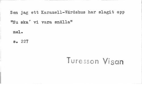 //// Sen jag ett Karamell-Värdshus har slagit opp "Uu ska' vi vara snälla" mel. s. 227 //// Turesson Visan ////