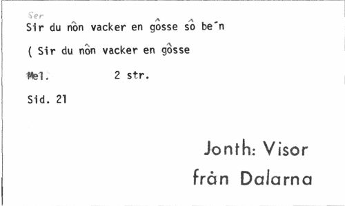 //// Ser A A //// Sir du non vacker en gosse so be'n //// ( Sir du non vacker en gosse //// Hel. 2 str. //// Sid. 21 //// Jonth: Visor från Dalarna ////
