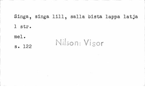 //// Singa, singa lill, salla bistå lappa latja //// 1 str. //// mel. //// s. 122 Nilson: Visor ////