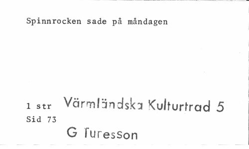 //// Spinnrocken sade på måndagen //// i str Värmländska Kulfurfrad 5 //// Sid 73 //// G FuresSon ////
