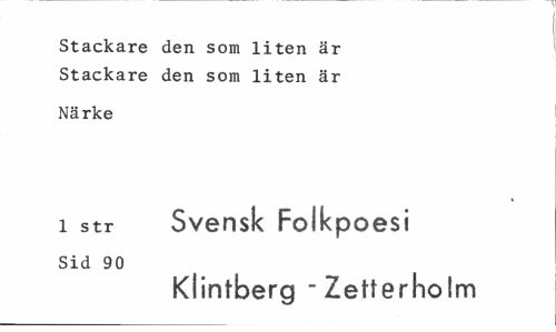 //// Stackare den som liten är Stackare den som liten är //// Närke //// i str Svensk Folkpoesi //// Sid 90 //// Klintberg "Zetterholm ////