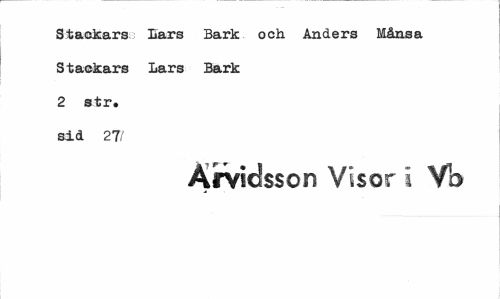 //// Stackars Ears Bark och Anders Månsa Stackars Lars Bark 2 str. sid 27/ //// Arvidsson Visor i Vb ////