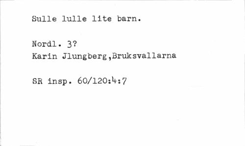//// Sulle lulle lite barn. Nordl. 3? //// Karin Jlungberg,Bruksvallarna SR insp. éO/lZOi^:7 ////