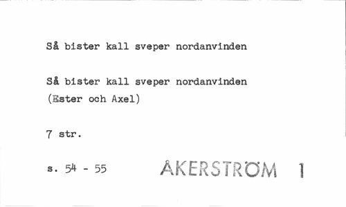 //// Så bister kall sveper nordanvinden //// Så bister kall sveper nordanvinden (Hster och Axel) //// 7 str. //// 3. 54 - 55 ÅKERSTRÖM 1 ////