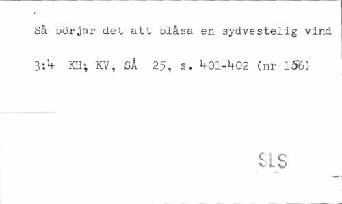 //// Så börjar det att blåsa en sydvestelig vind KH; KV, SÅ 25, s. ^01-^02 (nr 156) //// SLS ////