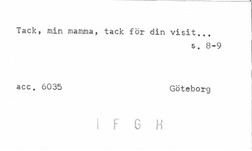 //// Tack, min mamma, tack för din visit.,. //// s. 8-9 //// acc. 6035 Göteborg //// I F 6 H ////