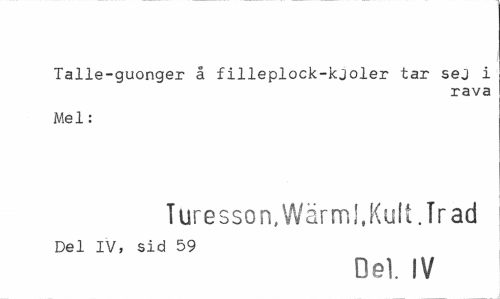 //// Talle-guonger å filleplock-kjoler tar sej i //// rava //// Mel: //// Turesson, Wärml.Kult.Tr ad //// Del IV, sid 59 //// Del. IV ////