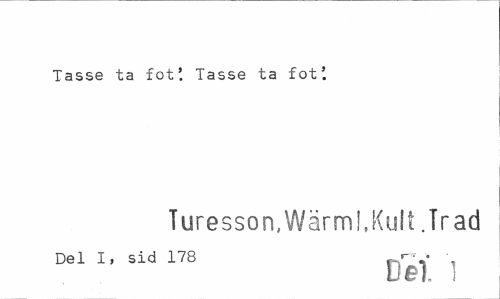 //// Tasse ta fot'. Tasse ta fot'. //// Turesson,Wärml.Kult .Trad //// Del I, sid 178 rW \ //// Dal 1 ////