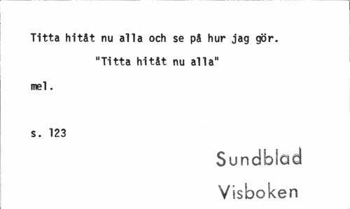 //// Titta hitåt nu alla och se på hur jag gör. "Titta hitåt nu alla" //// mel. s. 123 //// Sundbiad Visboken ////