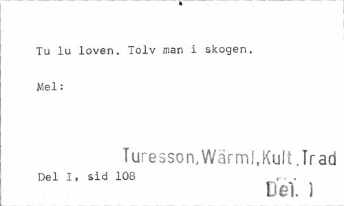 //// Tu lu loven. Tolv man i skogen. Mel: //// Turesson, Wärml,Kult .Trad //// Del I, sid 108 //// Del. ] ////