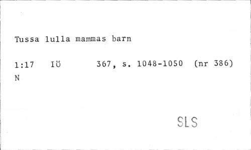 //// Tussa lulla mammas barn //// 1:17 IÖ 367, s. 1048-1050 (nr 386) //// N //// SLS ////