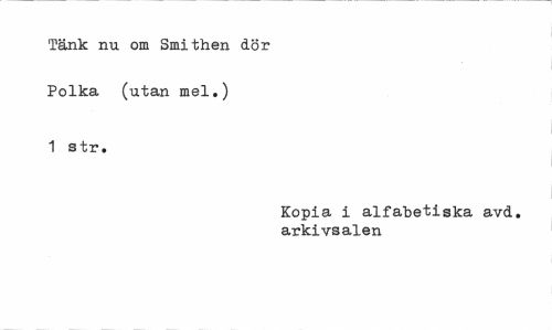 //// Tänk nu om Smithen dör Polka (utan mel.) //// 1 str. //// Kopia i alfabetiska avd. arkivsalen ////