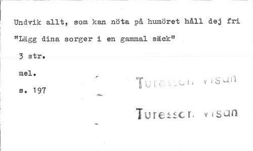 //// Undvik allt, som kan nöta på humöret håll dej fri "lägg dina sorger i en gammal säck" 3 str. mel. //// ' T. ¦¦ ; W » . V //// s. 197 //// Tureiicr. v i scin ////