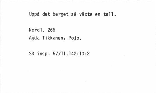 //// Uppå det berget så växte en tall. Nordl. 266 //// Agda Tikkanen, Pojo. SR insp. 57/11.142:10:2 ////