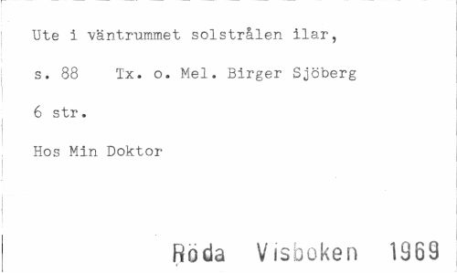 //// Ute i väntrummet solstrålen ilar, s. 88 Tx. o. Mel. Birger Sjöberg 6 str. //// Hos Min Doktor //// Roda Visboken 1369 ////