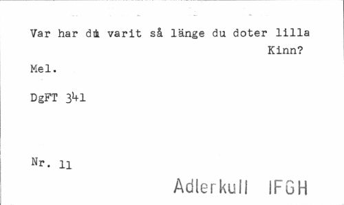 //// Var har dm varit så länge du doter lilla //// Kinn? //// Mel. //// DgFT 3I+I Nr. n //// Adlerkull IFGH ////