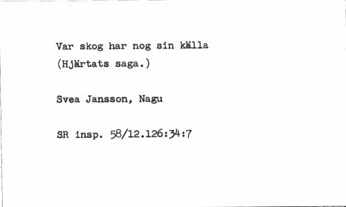 //// Var skog har nog sin källa (Hjärtats saga.) //// Svea Jansson, Nagu //// SR insp. 58/12.126:34:7 ////