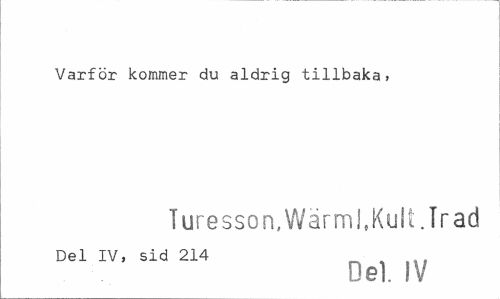 //// Varför kommer du aldrig tillbaka, //// Turesson.Wärml.Kult.Trad //// Del IV, sid 214 « , ... //// Del. IV ////
