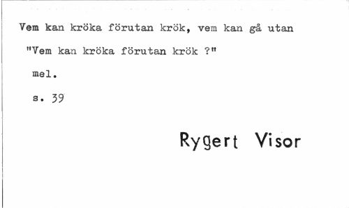 //// Vem kan kröka förutan krök, vem kan gå utan "Vem kan kröka förutan lcrök ?" mel. s. 39 //// Rygert Visor ////