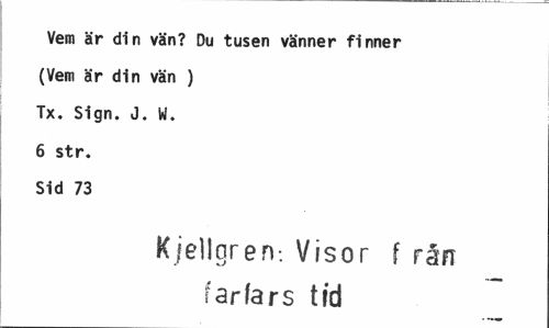 //// Vem är din vän? Du tusen vänner finner (Vem är din vän ) Tx. Sign. J. W. 6 str. Sid 73 //// Kjellgren: Visor f rån farfars tid ////
