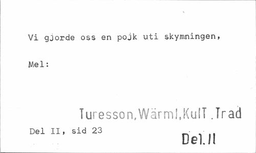 //// Vi gjorde oss en pojk uti skymningen, Mel: //// Turesson,Wärml.KulT .Trad //// Del II, sid 23 //// Dell! ////