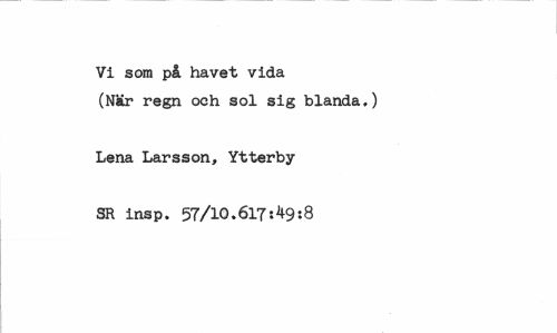 //// Vi som på havet vida //// (När regn ooh sol sig blanda.) //// Lena Larsson, Ytterby //// SR insp. 57/10.617:49:8 ////