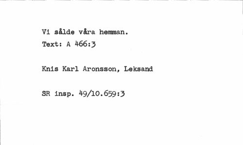 //// Vi sålde våra hemman. Text: A 466:3 //// Knis Karl Aronsson, Leksand SR insp. 49/10.6590 ////