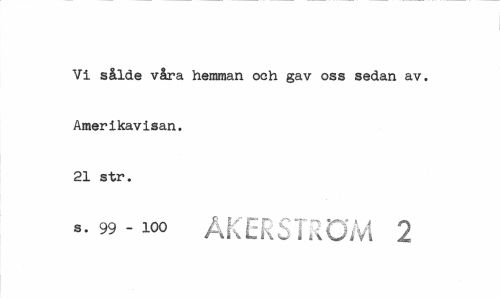 //// Vi sålde våra hemman och gav oss sedan av. //// Amerikavisan. //// 21 str. //// s. 99 -100 ÅKERSTRÖM 2 ////