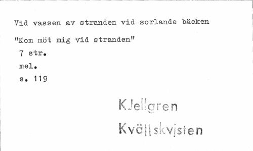 //// Vid vassen av stranden vid sorlande bäcken //// "Kom möt mig vid stranden" T str. mel. s. 119 //// KJe!!oren Kvä)l$kvjsren ////
