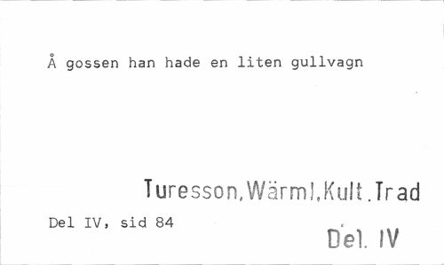 //// Å gossen han hade en liten gullvagn //// Turesson,Wärm!,Kull.Trad //// Del IV, sid 84 //// Del. IV ////