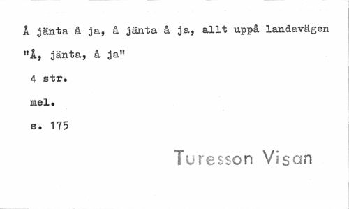 //// Å jänta å ja, å jänta å ja, allt uppå landavägen "Å, jänta, å ja" 4 str. Eiel. s. 175 //// Turesson Visan ////