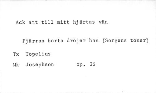 //// Ack att till mitt hjärtas vän //// Fjärran borta dröjer han (Sorgens toner) //// Tx Topelius //// Pik Josephson op. 36 ////